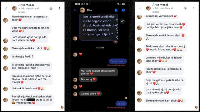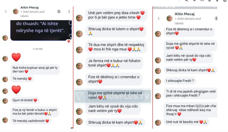 “Unë jam motra e Fredi Lamaj dhe dua të sqaroj se akuzat e shtetasit Altin Mecaj, sikur vëllai im e ka dhunuar, nuk janë të vërteta. Fredi Lamaj nuk ka marrë pjesë në asnjë rrahje apo konflikt, dhe kjo mund të faktohet. Po flas sepse prej më shumë se 6–7 ditësh ky shtetas po del vazhdimisht në media, duke dhënë deklarata të pavërteta dhe duke u paraqitur padrejtësisht si viktimë. Në mënyrë të veçantë, ai ka deklaruar publikisht se ndaj meje ka bërë vetëm një koment në Facebook, si një kompliment, gjë që nuk është e vërtetë. Në realitet, unë kam qenë subjekt i mesazheve të shumta private, të vazhdueshme dhe insistuese, të cilat përbëjnë ngacmim dhe përndjekje”, thotë zonja, së cilës në mesazhe, Mecaj i drejtohet si Fize.