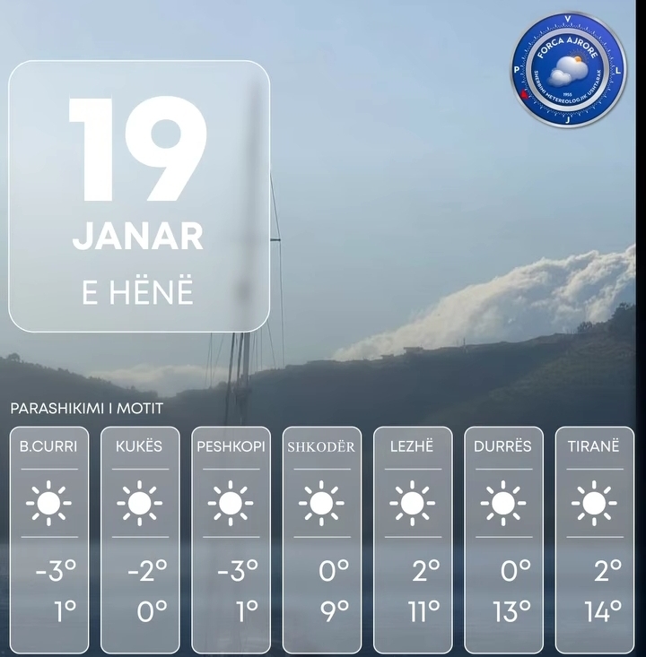 Ditën e hënë vendi ynë do të ndikohet nga kushte atmosferike të qëndrueshme.