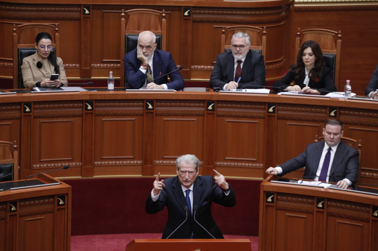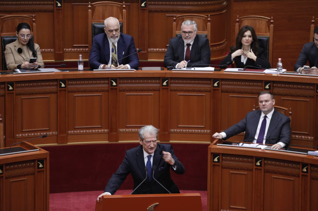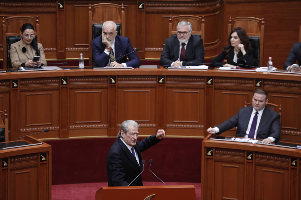 Pjesë nga fjala e Berishës: Kjo seancë sot, në vend se të dëshmojë atë që duhet të dëshmojë, qëndrimin tonë luajal në çështjet e sigurisë ndaj SHBA, vlerësimin tonë maksimal për njërën nga paqet më të vështira në historinë e paqes, siç ishte ta quajmë armëpushimi, ndërprerja e luftimeve në Gaza, figurat butaforike, Palloshi i Belindës, i jep kësaj seance nuanca… të lutem, nxirre jashtë Belindën se ajo i ka thënë Pallosh, nuk i kam thënë unë Pallosh. Pyetja ime është çfarë do të thuash kur Belinda ta marrë Palloshin me vete?.