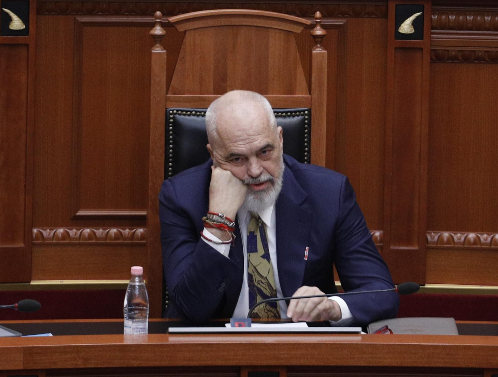 Teksa në foltore fliste kreu i PD-së, Sali Berisha, kryeministri Edi Rama e dëgjonte, ndërsa zëvendësja e tij, Belina Balluku shfrytëzonte kohën për të parë telefonin e saj.