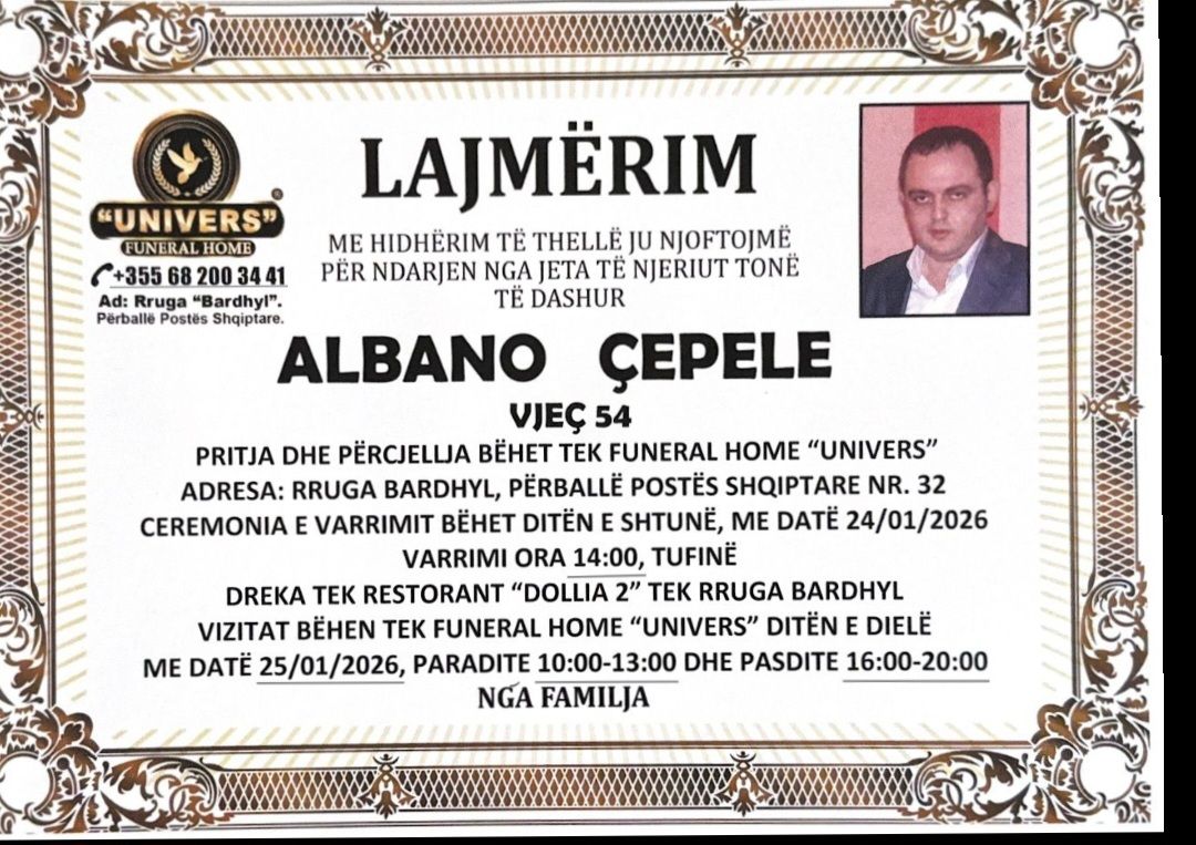 "Albano Çepele ka ndërruar jetë. Për ata që nuk e njihnin, Albanoja ka punuar si gjyqtar në Shkodër. Ka qenë një njeri i drejtë, i ndershëm, korrekt dhe i pakorruptuar. Këtë e them me bindje të plotë, pasi kam qenë sekretarja e tij.