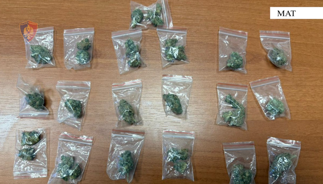Në pranga ka rënë F.P., 38 vjeç, banues në fshatin Suç, Klos. Sipas policisë, gjatë kontrollit të ushtruar në ambientet e një bilardoje ku ai punonte, u gjetën dhe u sekuestruan 19 doza kanabisi, të ndara dhe gati për shitje.