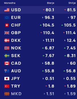 Ndërsa paundi britanik do blihet me 110.4 lekë dhe do shitet me 111.4 lekë.