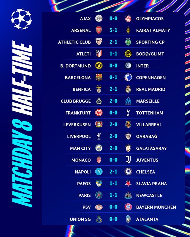 Jashtë kësaj 8-she ngeli Reali, që u mposht 4-2 nga Benfica e Mourinhos, ndërsa i njëjti fat ndoqi edhe kampionët në fuqi të PSG-së, që barazuan 1-1 me Newcastle.