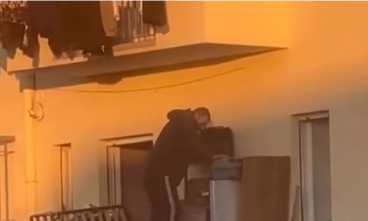 Rreziku shtohet edhe më shumë nga fakti se i riu kryen manovrën me shapka, ndërsa ballkoni është i mbushur me materiale të grumbulluara dhe hapësira për lëvizje është shumë e ngushtë.