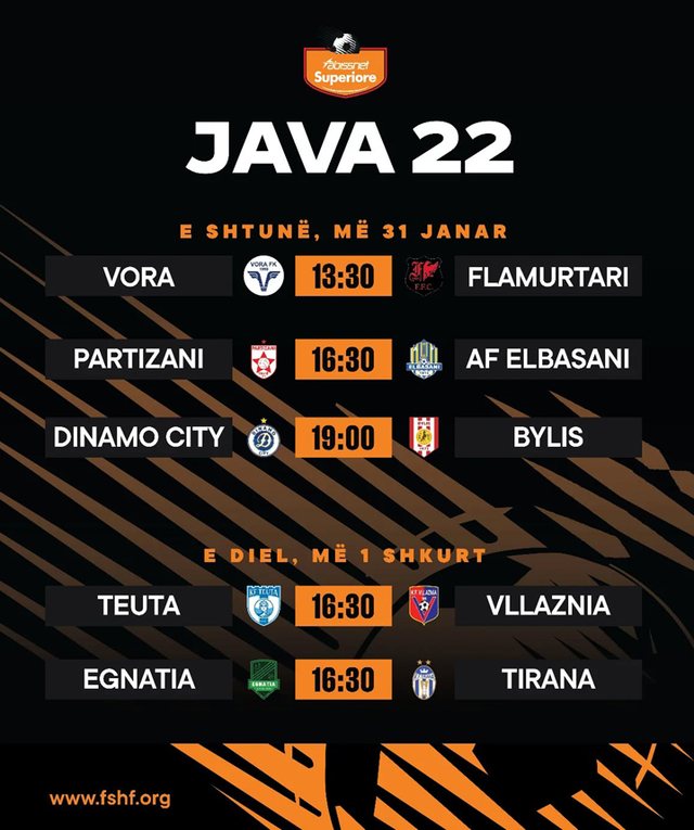 I kalendari i ndeshjeve të javës së 22-të: