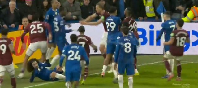 Chelsea siguroi fitoren falë golit të Enzo Fernández në kohën shtesë (90’+2), në një përmbysje të plotë, pasi West Hami – skuadra e drejtuar nga Nuno Espírito Santo – kishte kryesuar 2-0. Goli vendimtar ndezi reagime të forta në fushë dhe, pak çaste më vonë, situata degradoi në një përplasje masive.