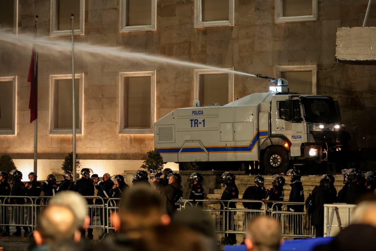 Tiranë, 10 shkurt 2026 – Protesta kombëtare e opozitës, e zhvilluar mbrëmjen e sotme para godinës së Kryeministrisë, u shoqërua me përshkallëzim tensionesh në orët e fundit të tubimit.