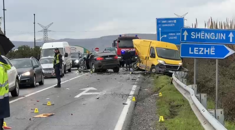 Sipas të dhënave paraprake, automjeti me drejtues shtetasin P. N. është përplasur me një furgon që drejtohej nga shtetasi K. Gj., si dhe me një tjetër automjet me drejtuese shtetasen E. Ll.