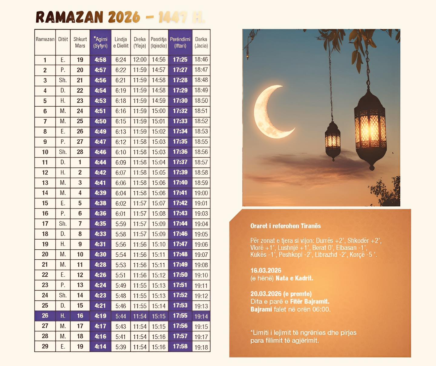 Sot nis muaji i shenjtë i Ramazani, një nga periudhat më të rëndësishme për besimtarët myslimanë në mbarë botën. Muaji i nëntë i kalendarit islamik hënor shënon kohën e agjërimit, reflektimit shpirtëror dhe përkushtimit ndaj besimit.