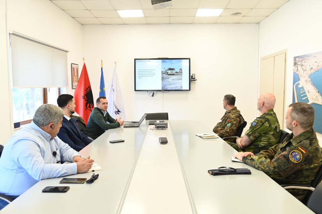 Sot, pasi delegacioni i KFOR vizitoi Portin e Durrësit, sipas një njoftimi zyrtar të APD, thuhet se u prit nga Zëvendës Drejtori i Përgjithshëm i Autoritetit Portual Durrës, z. Rubin Rredhi, i cili prezantoi zhvillimet kryesore të portit, funksionimin e terminaleve dhe kapacitetet logjistike që ofron infrastruktura portuale aktuale.