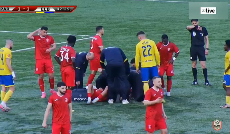 Episodi ndodhi në minutën e 43-të të takimit. Pjesa e parë u mbyll në barazim 1–1, në një sfidë të vlefshme për Kupa e Shqipërisë.