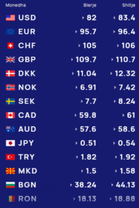 Për kursin e monedhave të tjera shihni tabelën e mëposhtme: