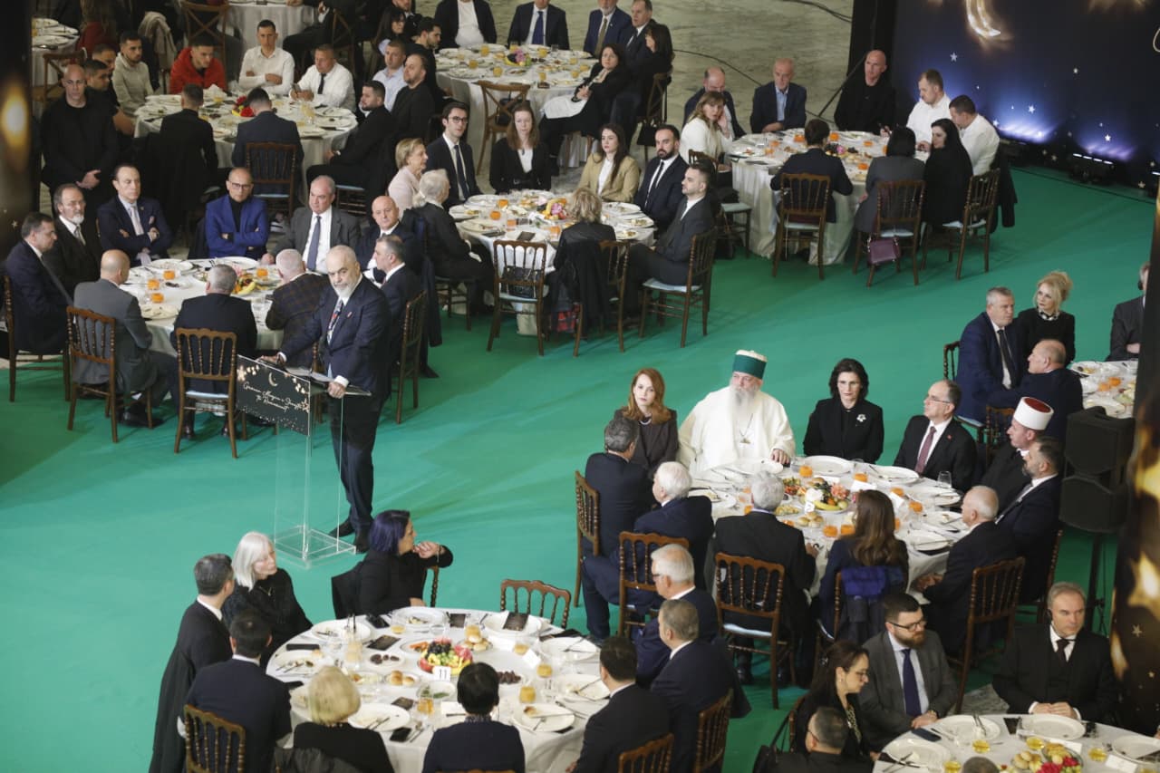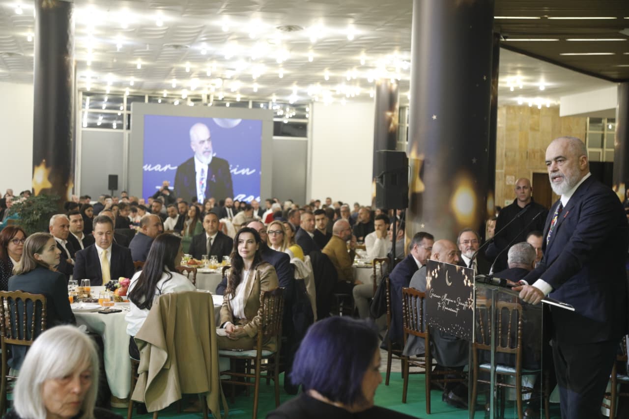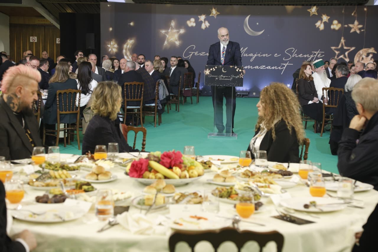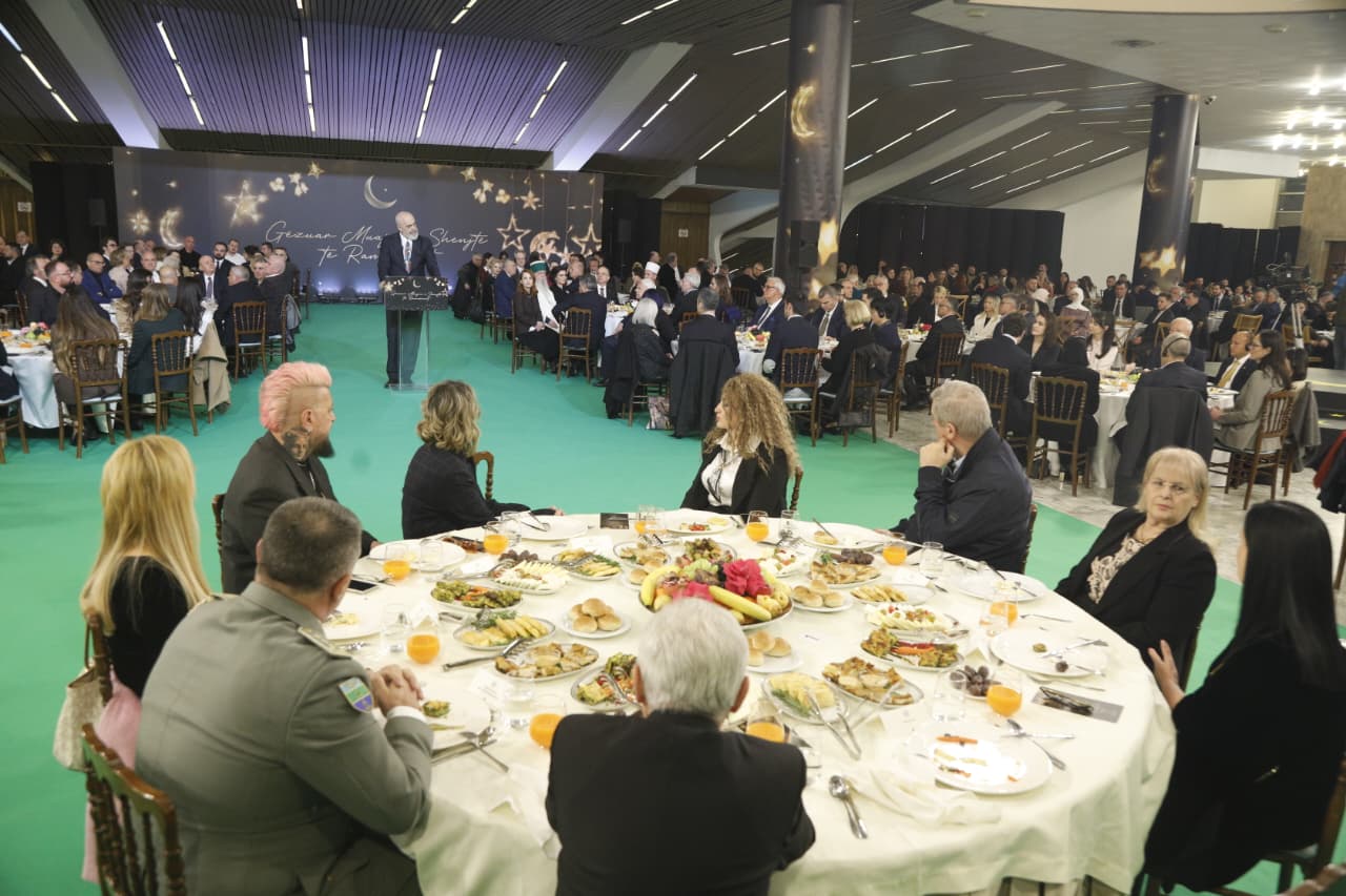 TIRANË, 12 mars 2026 – Në kuadër të muajit të shenjtë të Ramazanit, kryeministri i Shqipërisë, Edi Rama, së bashku me bashkëshorten e tij, Linda Rama, shtruan një iftar për besimtarët myslimanë në Pallati i Kongreseve në Tiranë.