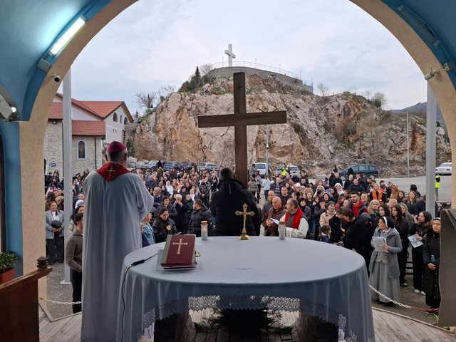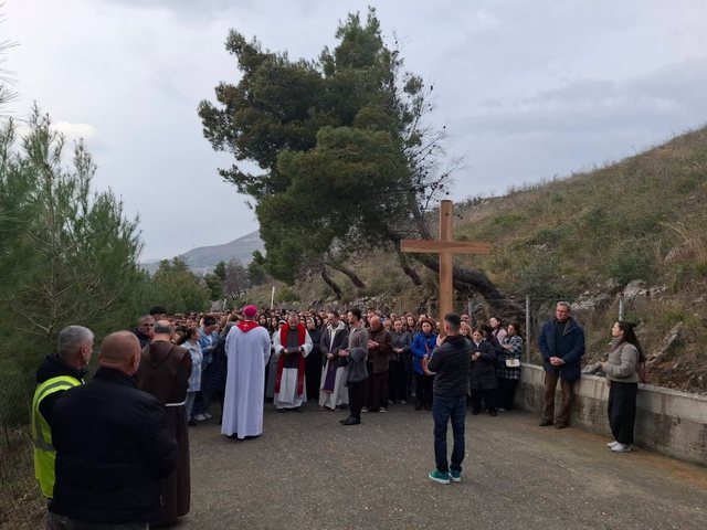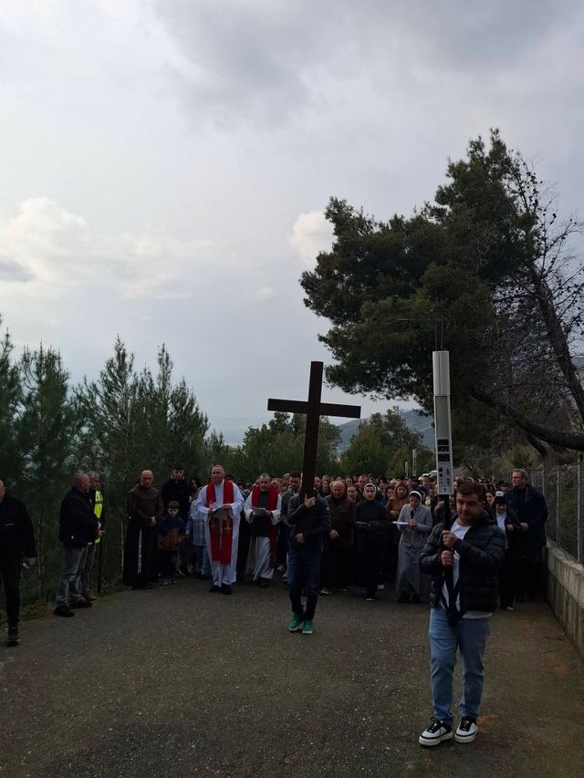 Laç, 24 Mars 2026 – Arqipeshkvi i dioqezës Tiranë-Durrës, imzot Arjan Dodaj, së bashku me përfaqësues të tjerë të klerit katolik, udhëhoqën ritualin fetar të Udhës së Kryqit në kishën e Shna Ndout në Laç.