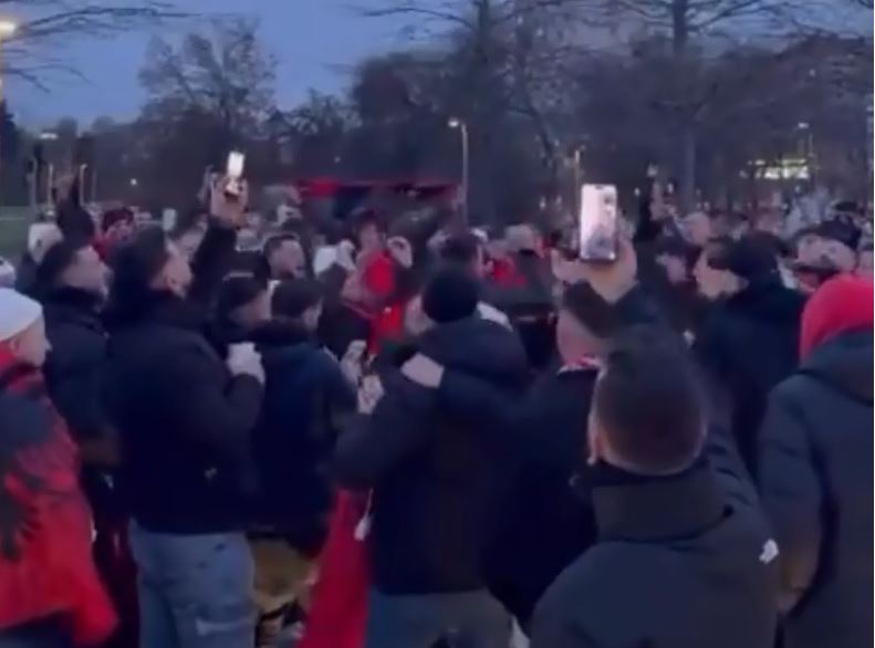 Me flamuj kombëtarë në duar, këngë patriotike dhe thirrje të vazhdueshme në mbështetje të ekipit, tifozët kanë nisur grumbullimet që në orët e para të mëngjesit. Brohoritjet “Shqipëri, Shqipëri” dëgjohen kudo, ndërsa shumë prej tyre marshojnë së bashku drejt stadiumit, duke tërhequr vëmendjen edhe të vendasve.
