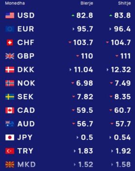 Ndërsa paundi britanik do blihet me 110 lekë dhe do shitet me 111 lekë.