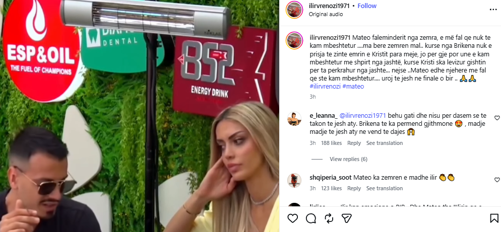 Postimin e tij, ai e përmbyll me një urim për Mateon, duke shprehur dëshirën që ai të arrijë deri në finale.