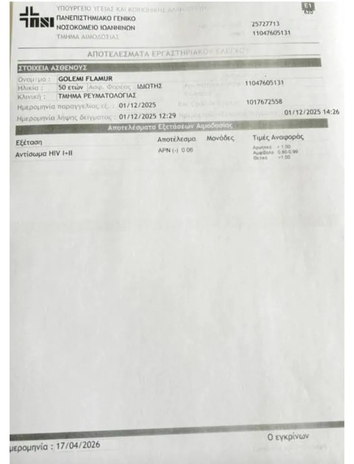 Dokumenti edhe pse pa vulë dhe firmë, është nga një klinikë, është mënyra si e lëshojnë ata sipas legjislacionit grek, nuk mund t’ua kërkojmë ta bëjnë sipas ligjit shqiptar kur klinika është në Janinë. Zoti Golemi është i hapur për verifikim. Këtu kemi dhe diskriminim për shkak të një gjendjeje shëndetësore, kemi shkaktim të panikut në publik me këtë shpifje.